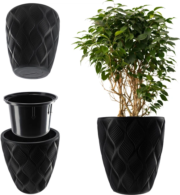 Горщик для квітів Kadax Jesi з вставкою 30 см Чорний (K4345) - зображення 1