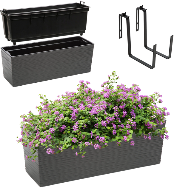 Пропонована нами міцна і надійна скринька складається з корпусу і вкладиша, оснащеного ручками - завдяки їм за кілька хвилин ви зможете вийняти вкладиш, замінити землю або посадити нові квіти. Хочете посадити бегонії, петунії, герані або вибрані трави - базилік, м'яту або майоран? Нічого простішого! Вставка забезпечить їм здорове цвітіння в найкращих умовах, забезпечуючи належну вологість.