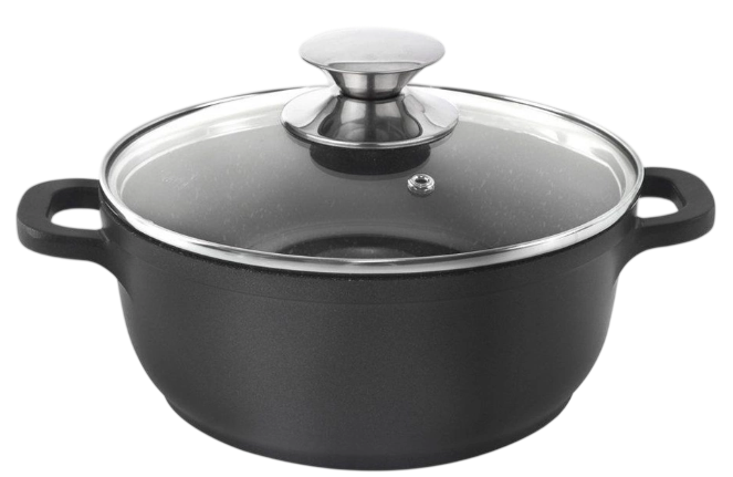 Надійна каструля діаметром 16 см та об’ємом 1,4 літра з кришкою. Каструля виготовлена з алюмінію чорного кольору та має всередині антипригарне гранітне покриття. Оснащена кришкою зі скла та нержавіючої сталі. Зовнішні розміри каструлі: 23 × 17 × 8 см, висота з кришкою — 12 см.