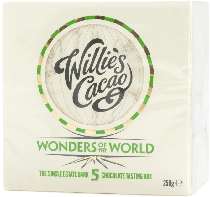 Набір шоколаду Willie's Cacao Wonders of the World – ідеальний вибір для тих, хто шукає вишукані шоколадні цукерки ручної роботи з високим вмістом какао. Кожна плитка дозволяє вам відкрити для себе нові смаки та аромати, переносячи вас у віддалені куточки світу та пропонуючи повний спектр смакових вражень, які цінують любителі справжнього темного шоколаду.