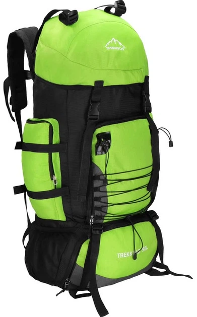 - У верхній частині спереду клапана вишитий білий логотип Springos, в нижній частині напис TREKKING 90L.