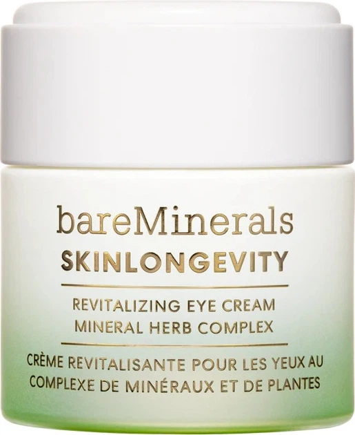 bareMinerals Skinlongevity Revitalizing Eye Cream – nawilżający krem pod oczy, stworzony, aby walczyć z oznakami zmęczenia i przedwczesnego starzenia się skóry. Produkt skutecznie redukuje drobne linie i zmarszczki u 93% użytkowników, zwiększa blask okolic oczu o 30% po 4 tygodniach oraz zmniejsza cienie pod oczami o 28%*.