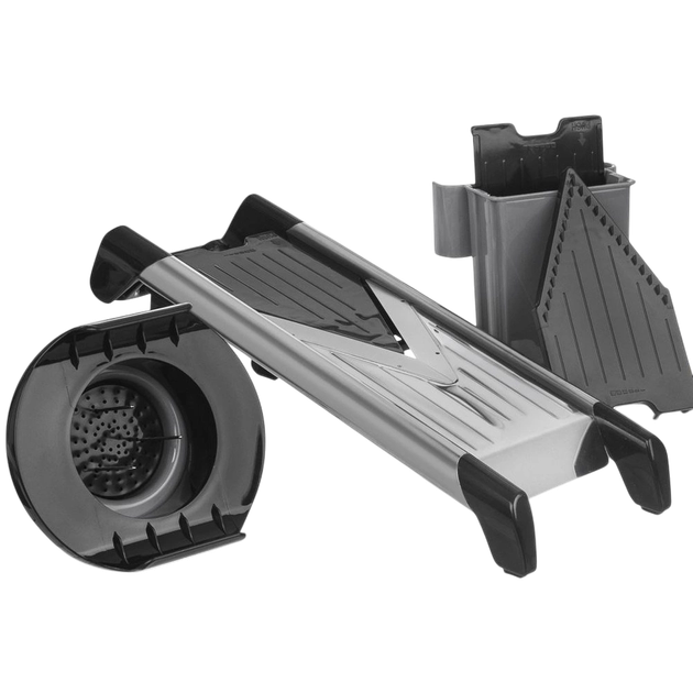 Ця різачка для фруктів та овочів є надзвичайно практичним інструментом на будь-якій кухні. Вона полегшує приготування різноманітних страв та виготовлена ​​з міцних матеріалів. Змінні насадки та регульована товщина скибочок дозволяють налаштувати приготування інгредієнтів відповідно до ваших індивідуальних потреб. У комплект також входить тримач для фруктів та овочів, який мінімізує ризик порізів під час нарізання та забезпечує безпечне використання. Оригінальний продукт від чеського бренду Orion. Виготовлено відповідно до європейських стандартів.