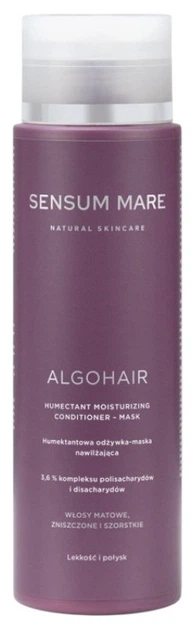 Зволожуючий кондиціонер для волосся Sensum Mare Algohair — це легка за текстурою кондиціонер-маска з насиченим складом, створена для інтенсивного зволоження волосся будь-якої пористості. Особливо добре підходить для ламкого, тьмяного, пошкодженого та шорсткого волосся, яке потребує відновлення еластичності та гладкості. Підвищений вміст зволожувальних компонентів допомагає волоссю утримувати вологу та робить його більш пружним.