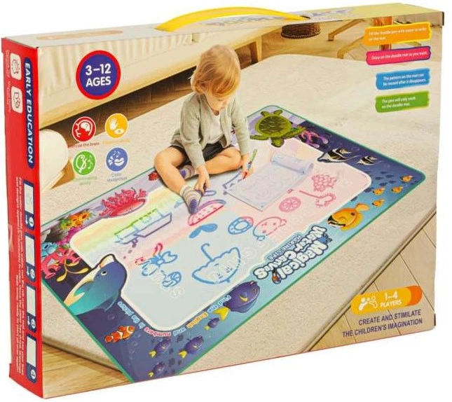 Подаруйте своїй дитині подарунок, який розвиває, розважає та не створює безладу! Цей водяний килимок для малювання — інвестиція у розвиток і безтурботні моменти, сповнені магії. Готові привнести цю революцію у світ вашої дитини? Цей розкішний набір для малювання водою — ідеальний подарунок для будь-якої дитини від 3 років, що гарантує години захоплюючої, творчої гри. Жодних токсинів, жодного чорнила — лише чиста вода і нескінченна фантазія!