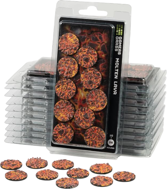Оживіть свої фігурки та діорами завдяки надзвичайно деталізованим топерам Molten Lava! Ці готові, пофарбовані підставки у стилі рідкої лави перенесуть ваші діорами та армії прямо в пекельні ландшафти. Тріщини в землі, розколоті скелі та вибухи гарячої магми створять драматичний фон, ідеальний для небезпечних місій та хаотичних битв.