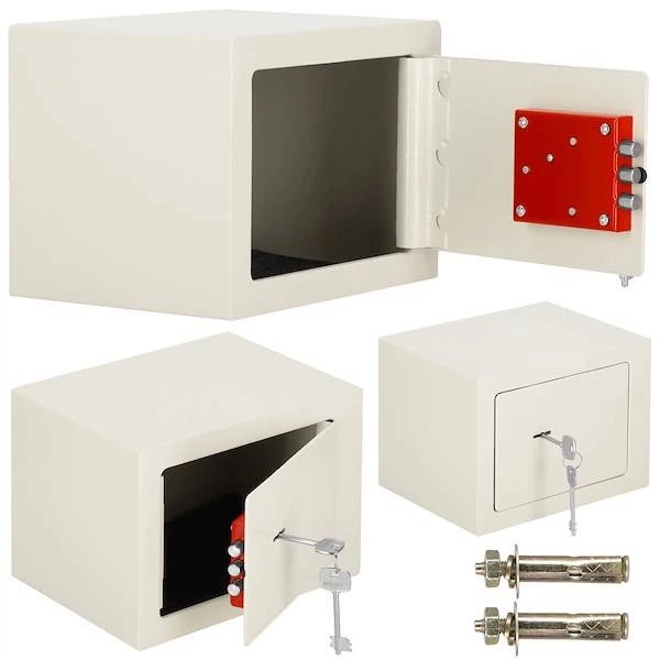 - продається в комплекті з монтажними штифтами, двома ключами та фетровою підкладкою, яка захистить цінні предмети та зменшить шум всередині сейфа