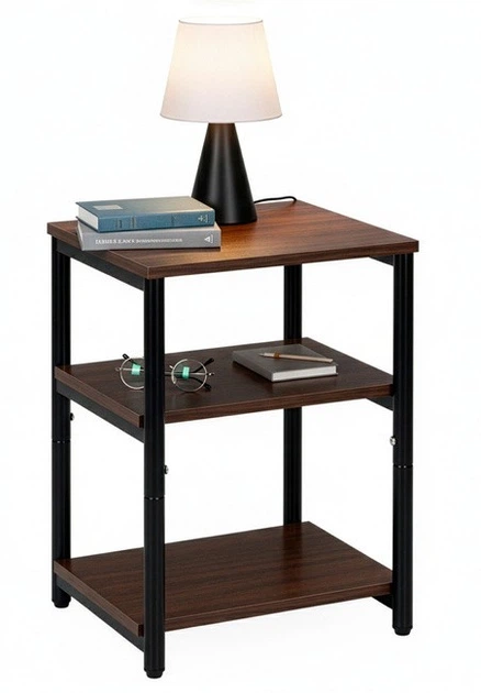 Сучасна тумбочка з практичними полицями – ідеальне рішення для тих, хто цінує зручність та елегантність у своїй спальні. Завдяки своїм розмірам вона ідеально вписується навіть у невеликі приміщення, не займаючи занадто багато місця. Її темно-коричневий колір додає кімнаті приємного тепла та надає їй стильного характеру. Конструкція спирається на стабільні ніжки, які забезпечують безпеку використання та довговічність меблів. Продумане розташування полиць дозволяє зручно зберігати найважливіші дрібниці під рукою. Це чудове місце для нічного світильника, улюбленої книги або декорацій, що підкреслюють дизайн спальні. Меблі виготовлені з матеріалів, які легко підтримувати в чистоті, що впливає на їх функціональність. Ретельно опрацьовані деталі роблять тумбу надзвичайно естетичною. Її універсальний дизайн підходить як для сучасних, так і для класичних інтер'єрів. Завдяки відповідній висоті користуватися нею надзвичайно зручно. Полиці, розміщені в конструкції, збільшують організаційні можливості користувача. Приліжкова тумба також ідеально підійде для молодіжної кімнати або вітальні. Це меблі, які поєднують зручність щоденного використання з елегантним зовнішнім виглядом. Темно-коричневий відтінок дозволяє легко поєднати її з іншими елементами інтер'єру. Вона додає інтер'єру додаткової гармонії та порядку. Це практичний вибір для тих, хто хоче створити функціональний і затишний простір для відпочинку. Надійна конструкція гарантує тривале використання. Кожен, хто шукає міцну і естетичну тумбочку, оцінить її переваги. Це меблі, які поєднують практичність з позачасовою елегантністю і є прекрасним доповненням до інтер'єру спальні.