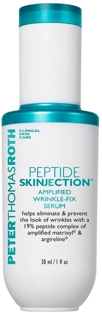 Сироватка для обличчя Peter Thomas Roth Peptide Skinjection Amplified – це вдосконалена неінвазивна сироватка, яка діє профілактично проти мімічних зморшок або доповнює ефект від процедур, що проводяться в клініці. Її формула, заснована на посилених пептидах, допомагає помітно зменшити існуючі зморшки та запобігти утворенню нових, одночасно покращуючи пружність, еластичність та міцність захисного бар'єру шкіри.