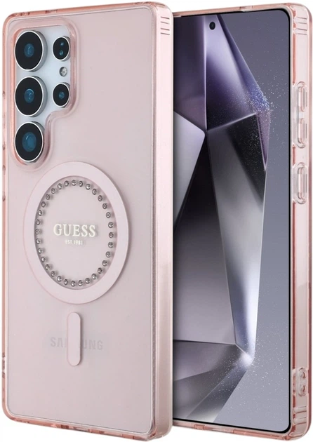 Ексклюзивний захисний чохол від відомого бренду Guess – це поєднання елегантності та стилю на найвищому рівні. У центральній частині чохла розміщено логотип Guess, який тонко підкреслює престиж цього чохла. Крім того, блискучі стрази в центрі кільця MagSafe надають всьому чохлу виняткового блиску і додають розкішного акценту. Це ідеальне поєднання функціональності та елегантного дизайну, яке не тільки забезпечить чудовий захист вашого телефону, але й перетворить його на модний аксесуар.