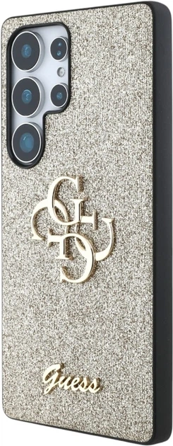 Гламурний чохол Guess з колекції Fixed Glitter Big 4G Metal Logo відрізняється елегантним, впізнаваним дизайном 4G з золотим логотипом Guess.