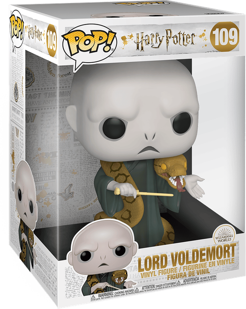 Лорд Волдеморт, Той-Чиє-Ім'я-Не-Можна-Вимовляти, виглядає більш вражаюче і зловісно, ніж будь-коли раніше, у цій 10-дюймовій (приблизно 25 см) фігурці Pop!, тримаючи біля себе свого вірного змія – Нагіні.
