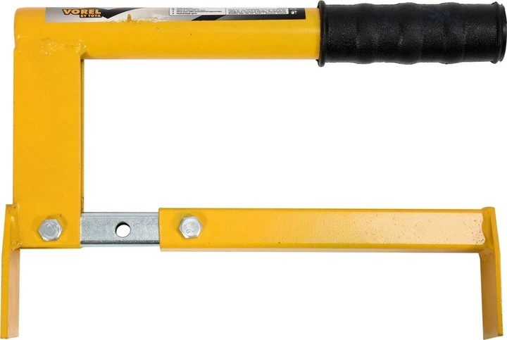 Chwytak brukarski, jednoręczny regulowany. Służy do wygodnego i bezpiecznego przenoszenia cegieł, klinkieru, kostki brukowej oraz niewielkich płytek betonowych lub kamiennych.
