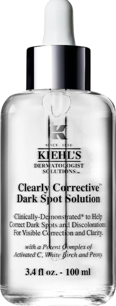 Kiehl’s Clearly Corrective Dark Spot Solution — це інтенсивна сироватка для обличчя, яка допомагає помітно освітлити пігментацію та вирівняти тон шкіри. Завдяки легкій формулі з активованим вітаміном С (Activated C), буферизованою саліциловою кислотою та екстрактом півонії, сироватка ефективно зменшує темні плями, гіперпігментацію та постакне, а також покращує загальне сяйво та прозорість шкіри. Засіб підходить для всіх типів шкіри, зокрема чутливої, і може використовуватися щодня вранці та ввечері. Сироватка діє на глибокі шари епідермісу, підтримуючи природні процеси освітлення та вирівнювання тону, завдяки чому шкіра виглядає більш сяючою, гладкою та однорідною.