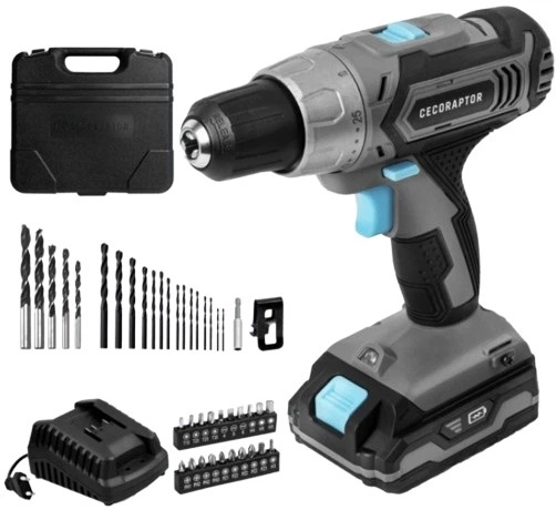 Комплект включає: дриль CecoRaptor Perfect Drill 2020; 1 акумулятор 20 В 2000 мАг; швидкий зарядний пристрій із зарядною базою та блоком живлення; набір біт (20); свердла (20), магнітний з'єднувач; затискач для ременя; інструкції; футляр для перенесення