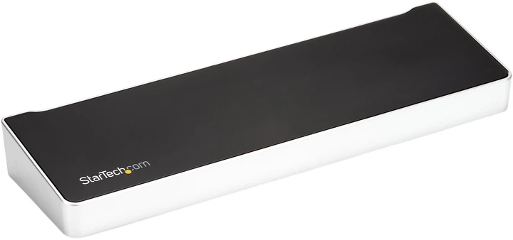 Ця док-станція з підтримкою трьох моніторів перетворює ноутбук на повноцінну робочу станцію. Вона оснащена п’ятьма портами USB 3.0 (один USB-C і чотири USB-A, включно з одним портом швидкого заряджання), гігабітним Ethernet-портом, роз’ємом для гарнітури, а також окремими 3.5-мм аудіо- та мікрофонними входами.