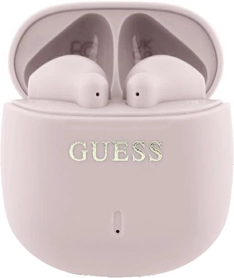 Różowy kolor nadaje słuchawkom unikatowy i minimalistyczny wygląd. Metaliczne logo marki Guess na obudowie dodaje luksusowego akcentu.