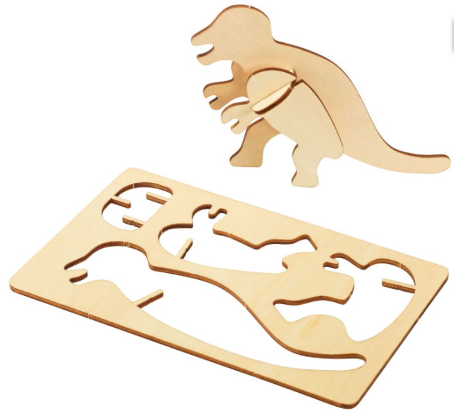 Чотири улюблені динозаври готові взяти вас у доісторичну пригоду! Вийміть деталі з фанерних пластин, прикрасьте їх фарбами, олівцями або фломастерами та зберіть, вирівнюючи прорізи — інструменти не потрібні. Пазли мають лише 4–7 частин на динозавра, тому їх легко і цікаво складати. Складені динозаври мають розміри в середньому 10 см x 3,8 см x 7,6 см і можуть самостійно стояти. Ідеально підходять для класних проектів або сімейних зустрічей, особисто або онлайн.