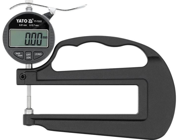 Товщиномір Yato YT-72322 цифровий для листового металу 12.7 / 0.001 мм (5906083122408). Електронний товщиномір з точністю ±0.001 мм — це високоточний вимірювальний інструмент, призначений для визначення товщини різноманітних матеріалів, включаючи листи металу, плити, аркуші з металу, паперу, пластику чи скла. Відмінно підходить для використання в майстернях, вимірювальних лабораторіях та при контролі якості, де важлива точність і повторюваність вимірювань.