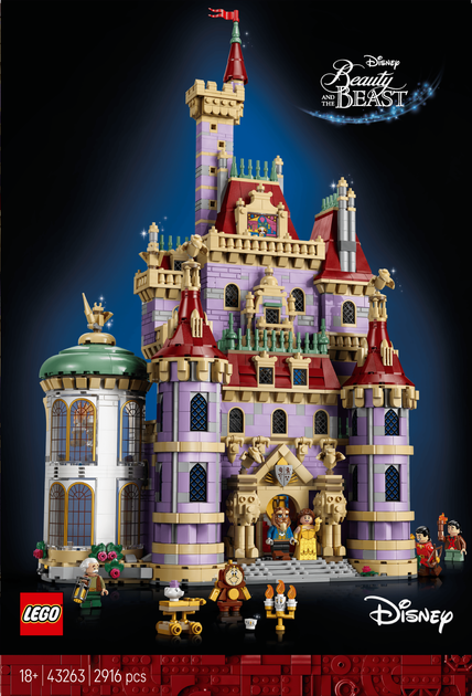 Втілюйте пристрасть до творчих моделей і фантастичних замків принцес завдяки набору конструктора для дорослих від LEGO Disney Princess Замок Красуні й Чудовиська (43263). Модель має 4-рівневий замок з кількома кімнатами, зокрема бальною залою з підлогою, що обертається, і обідньою залою зі столом і тарілками, що, також, обертаються. У наборі є парадні сходи, які можна відʼєднати, і кімната з чарівною трояндою і прихованим сховищем у вежі, а також низка згадок фільму і його деталей. До набору також входять 10 персонажів, які оживляють сюжет: мініфігурки Белль, Чудовиська, Ґастона, Лефу й Моріса від LEGO Disney, а також Люмʼєра, Фіфі, Когсворта, Чіпа і місіс Поттс від LEGO Disney.