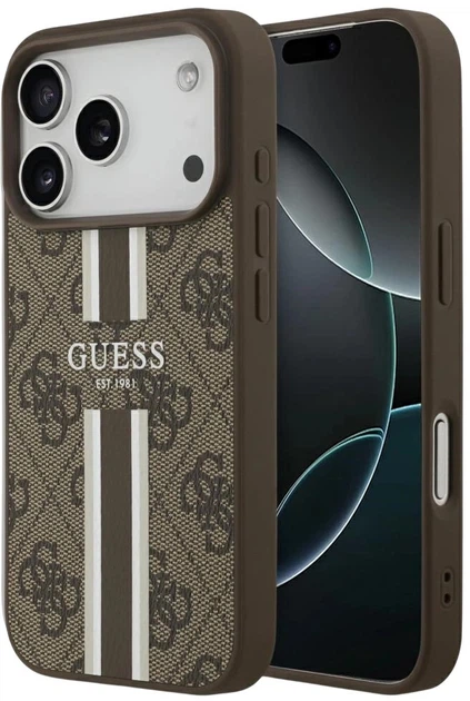 Панель Guess 4G Printed Stripes MagSafe для Apple iPhone 17 Pro Brown (3666339491420)