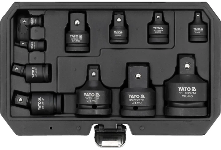 Набір редукцій і ударних шарнірів Yato YT-10646 11 елементів (5906083116490). Розширте можливості своїх інструментів за допомогою професійного набору редукцій і шарнірів ударних YT-10646. Ідеально підходить для вимогливих робіт у машинобудівній промисловості та автомобільних сервісах.