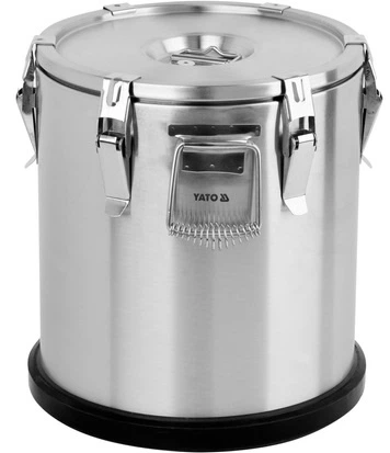 Ізольований контейнер оснащений двома міцними ручками з нержавіючої сталі для зручного транспортування та шістьма засувками для закриття кришки. Висока якість та довговічність цих компонентів гарантують роки безпроблемного використання. Дно термосів Yato захищене гумовою кришкою, яка запобігає їх ковзанню під час транспортування.