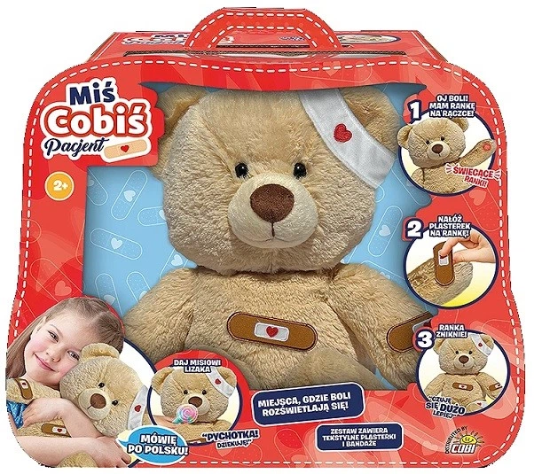 Poznaj uroczego Misia Cobiś Pacjenta — interaktywną zabawkę, która uczy dzieci troski i codziennych rytuałów w formie angażującej zabawy.