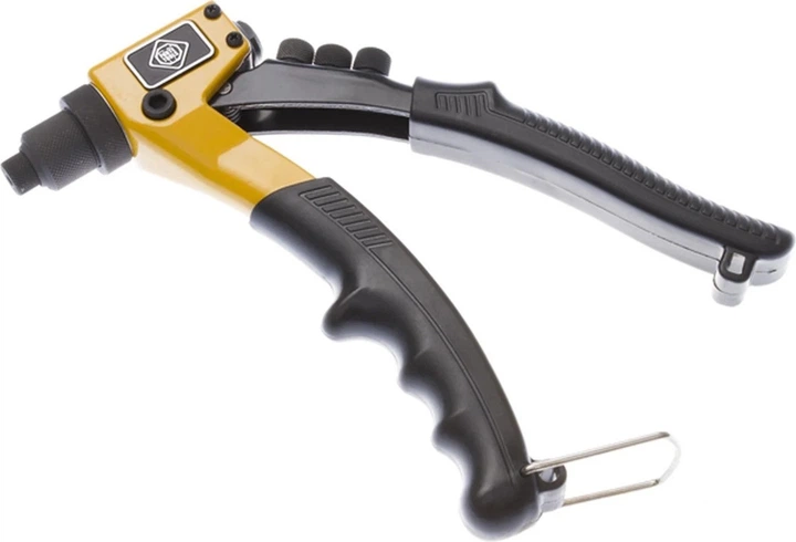 Конструкція заклепника дозволяє працювати з алюмінієвими заклепками діаметром до 4.8 мм, а також зі сталевими та нержавіючими заклепками діаметром до 3.2 мм, що забезпечує широке застосування при з'єднанні листів, металевих профілів та інших конструкційних елементів. Інструмент характеризується компактною конструкцією та відповідним балансуванням, а вага 0.8 кг дозволяє стабільно працювати, зберігаючи контроль над силою натиску.