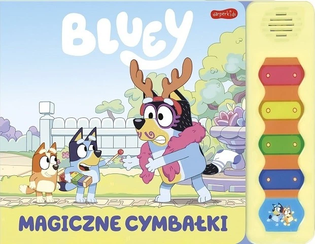 «Чарівні цимбали» – це звукова книга, з якою можна гратися без кінця. Молодий читач знайде тут веселі та сповнені теплого гумору сценки з життя своїх улюблених героїнь серіалу – Блу та Бінго, а також звукову панель, яку можна використовувати в іграх різними способами. Послідовні кнопки панелі запускають приємні для вуха, природні і ненав'язливі звуки цимбал, а остання кнопка – радісний сміх Блу і Бінго. Зміст книги – це відомі з мультфільму пригоди сестричок, які за допомогою Чарівних цимбал зачаровують і розчаровують тата.