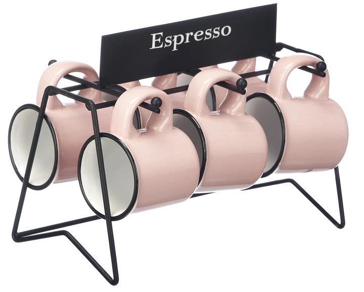 Підніміть ритуал ранкового кавування на новий рівень завдяки набору, який поєднує італійську традицію еспресо з сучасним дизайном. Набір з 6 порцелянових чашок місткістю 100 мл – ідеальне рішення для любителів міцних напоїв. Завдяки металевій підставці, що входить до комплекту, набір не тільки красиво виглядає на стільниці, але й дозволяє максимально ефективно використовувати простір у вашій кухні або офісному кухонному куточку.