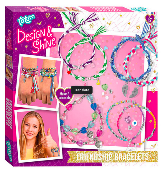Design & Shine — to zestaw kreatywny do tworzenia unikalnych bransoletek przyjaźni (friendship bracelets). W zestawie znajduje się wszystko, co niezbędne do wykonania 8 stylowych bransoletek z wykorzystaniem różnokolorowych nici, koralików, metalowych zawieszek i elementów dekoracyjnych. Idealnie nadaje się do wspólnej twórczości z przyjaciółmi lub rodziną, rozwija kreatywność, motorykę małą oraz wyobraźnię.