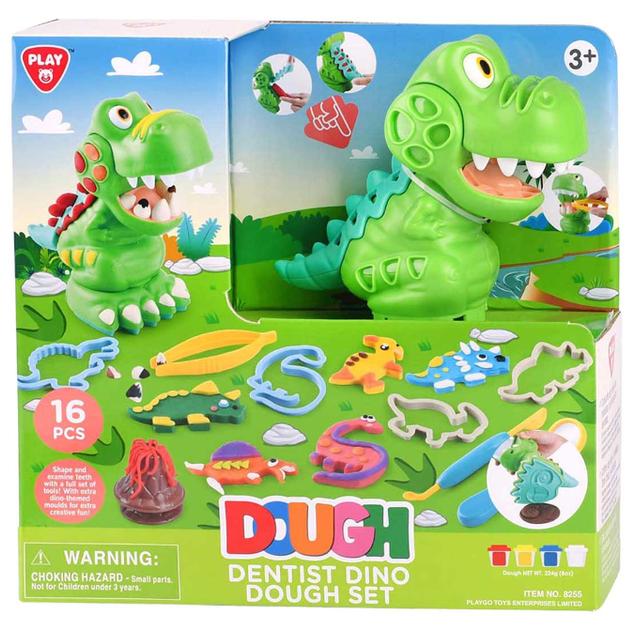 PlayGo Dino Dentysta — це креативний набір з пластиліном, який переносить дітей у веселий світ динозаврів і... візитів до стоматолога! Призначений для дітей від 3 років, набір заохочує до творчої гри, розвиває уяву та ручні навички в легкій, гумористичній формі.