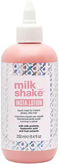 З лосьйоном Milk Shake Insta Lotion волосся миттєво набуває інтенсивного блиску завдяки відновлювальним інгредієнтам, які балансують рівень зволоження волосся і забезпечують гладкість. Лосьйон відновлює сяйво і блиск волосся, залишаючи після себе свіжий персиковий аромат. Кращий засіб для додання блиску волоссю в домашніх умовах.