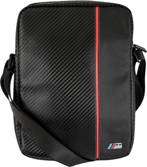 Для виробництва використано високоякісний нейлон, який гарантує міцність і стійкість до погодних умов. Передня частина сумки покрита екологічною шкірою з делікатною фактурою, прикрашеною унікальним візерунком carbon, що надає виробу сучасного та спортивного вигляду. Стильна смуга, що проходить по передній частині сумки, підкреслює її динамічний характер, а нашита емблема BMW M Power підтверджує автентичність та високу якість баварського бренду.
