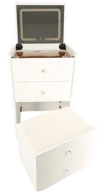 - Функціональність: продумані шухляди та дзеркало забезпечують зручний доступ до всіх косметичних засобів і аксесуарів.