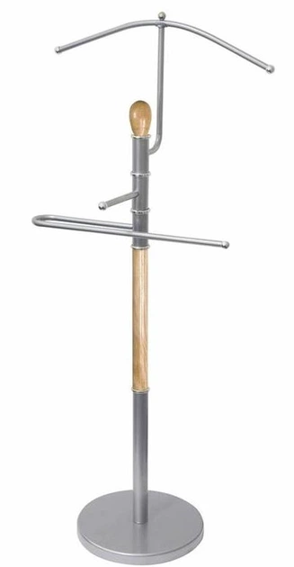 Мовчазний помічник із хрому та дерева — це практичний аксесуар для зберігання одягу. Висота — 107 см. Конструкція має міцну основу, хромовані елементи з матовим покриттям, а дерев’яні частини виконані у світло-коричневому кольорі.