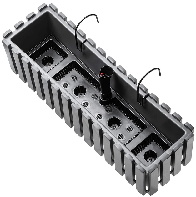Балконний горщик Kadax Glifada К8433 — це міцна та легка пластикова скринька для квітів, виготовлена з ударостійкого та стійкого до атмосферних умов матеріалу, який не втрачає кольору під дією сонця та легко очищується. Модель має класичну прямокутну форму з декоративною фактурою, що імітує дерев’яні планки, завдяки чому виглядає акуратно та універсально підходить до будь‑якого балкону чи тераси. Горщик оснащений зручними бічними ручками для надійного кріплення на перилах, а також має інтегровану підставку, яка допомагає підтримувати оптимальний рівень вологості ґрунту. Завдяки продуманим розмірам, модель забезпечує достатній простір для висаджування квітів, зелені або декоративних рослин, створюючи доглянуту та гармонійну композицію на балконі.