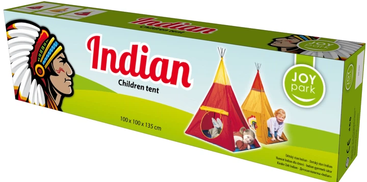 Дитячий намет INDIAN II служить затишним укриттям у кімнаті або захистом від вітру та сонця в саду. Намет виготовлений зі 100% поліестерового полотна, основа - PE, стрижні - скловолокно, металеві з'єднання. Розміри 100 x 100 x 135 см.