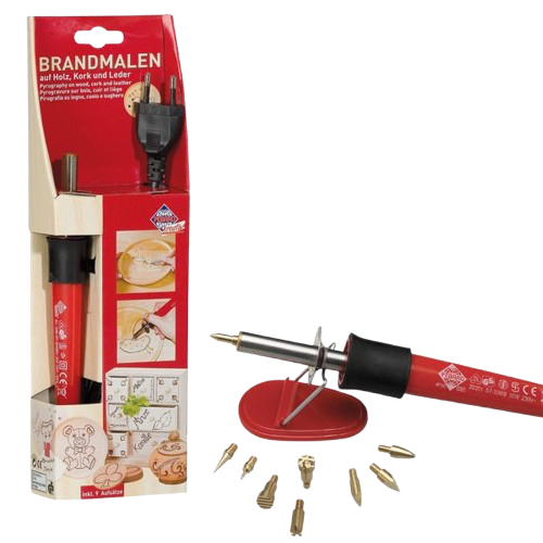Випаювач деревини – це універсальний пірографічний пристрій, призначений для декорування дерева, шкіри та корка шляхом випалювання візерунків на поверхні матеріалу. Набір ідеально підходить для хобі, творчості та шкільних проектів.