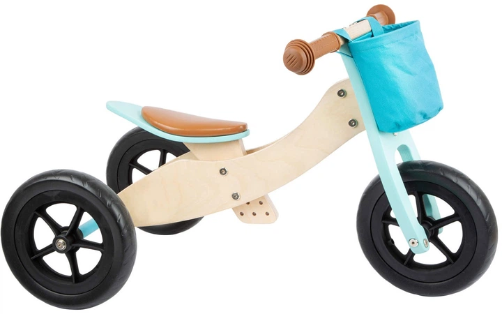 Крутий і безпечний! Цей легкий дерев'яний триколісний тренувальний велосипед росте разом з дітьми і адаптується до їхнього зросту завдяки триступеневому регулюванню висоти сідла і триступеневому регулюванню відстані між сідлом і кермом! Безпечна версія з трьома колесами і двома задніми колесами ідеально підходить для початківців, а коли навчання і рівновага дозволять, її можна перетворити на класичний біговий велосипед! Руль з обмежувачем повороту забезпечує додаткову безпеку! У знімній сумці на кермі можна зберігати улюблені іграшки та інші предмети. Гумові ручки, міцні шини EVA Soft і м'яке сідло забезпечують комфортну їзду. Спочатку триколісний тренувальний велосипед, потім біговий велосипед! Це ідеальна підготовка до їзди на велосипеді без додаткових коліс. Бігові та триколісні велосипеди тренують моторику, рівновагу та координацію краще, ніж будь-який інший дитячий транспортний засіб – і роблять це в унікальний спосіб!