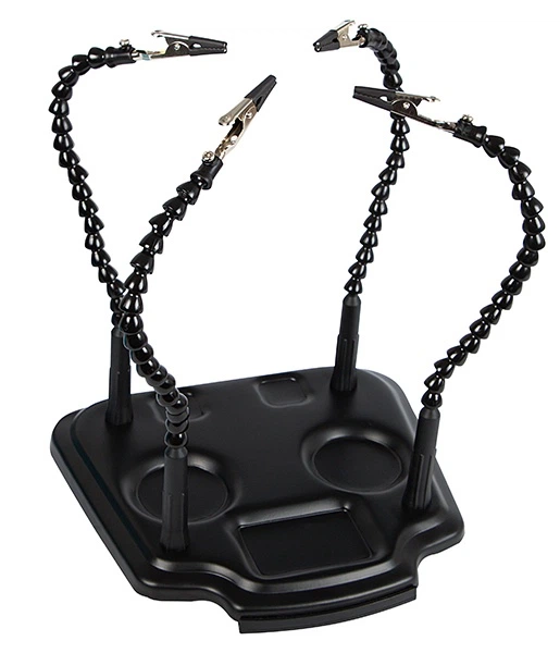 Тримач підходить для паяння, ремонту електроніки, збирання моделей, хобі та ювелірних робіт. Компактна конструкція зручна для розміщення на робочому столі та не займає багато місця.