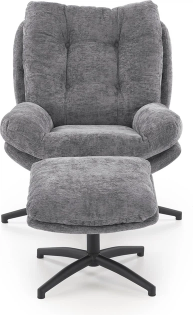 Największym atutem modelu jest obrotowe siedzisko 360°, które zwiększa komfort użytkowania. Fotel ma szerokość 75 cm, wysokość 97 cm, wysokość siedziska 46 cm oraz głębokość 86 cm. Idealny wybór do nowoczesnego salonu lub pokoju wypoczynkowego.