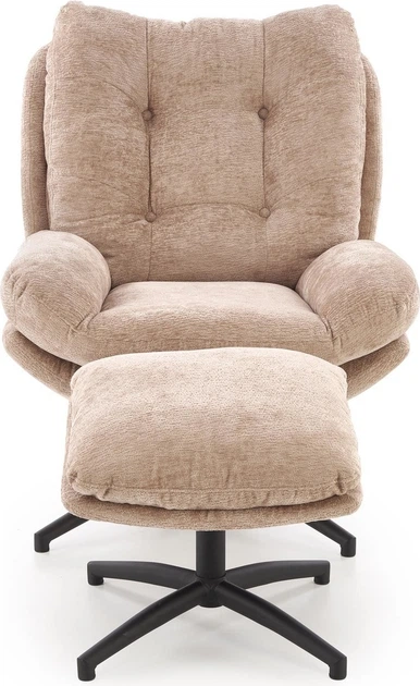 Największym atutem modelu jest obrotowe siedzisko 360°, które zwiększa komfort użytkowania. Fotel ma szerokość 75 cm, wysokość 97 cm, wysokość siedziska 46 cm oraz głębokość 86 cm. Idealny wybór do nowoczesnego salonu lub pokoju wypoczynkowego.