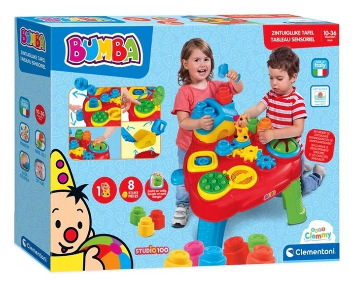 Завдяки отворам дитина може кидати кубики Clemmy в поглиблення в ніжках столу, а потім піднімати їх. Таким чином розвивається розуміння причинно-наслідкового зв'язку.