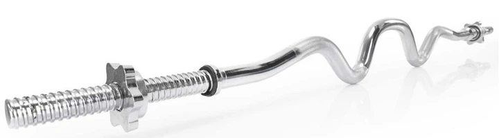 Модель виготовлена з високоякісної хромованої сталі, яка гарантує довговічність, стійкість до корозії та естетичний сріблястий вигляд. Стандартний діаметр 25 мм забезпечує сумісність з популярними обтяженнями. Різьбові кінціки забезпечують стабільне і надійне кріплення дисків, а додані затискачі з гумовими ущільнювачами ефективно запобігають їх зміщенню під час тренування.