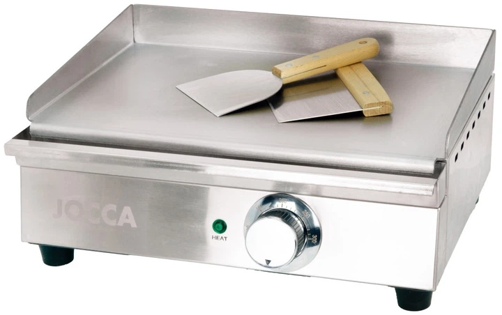 Електрична гриль‑пластина Jocca 1700 Вт — це потужний та універсальний прилад, який забезпечує швидкий нагрів і професійні результати завдяки потужності 1700 Вт. Вона оснащена міцною антипригарною пластиною з нержавіючої сталі товщиною 3 мм, на якій можна різати продукти без ризику пошкодження поверхні. Велика зона приготування 39.6 × 26 см дозволяє готувати кілька порцій одночасно, що ідеально підходить для сімейних обідів або зустрічей із друзями. Регульований термостат у діапазоні 50–300 °C дає змогу точно налаштовувати температуру для овочів, м’яса, риби чи морепродуктів. Знімний піддон для збору жиру з магнітним кріпленням робить очищення простим і зручним, а нековзні ніжки забезпечують стабільність під час роботи. У комплект входять дві сталеві лопатки для комфортного приготування. Завдяки розмірам 40.5 × 30.9 × 18.3 см та живленню 220–240 В ~ 50 Гц, ця гриль‑пластина стане надійним помічником для створення смачних страв у домашніх умовах.