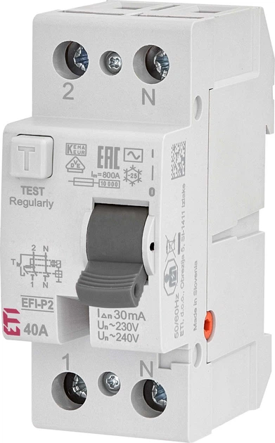 Двополюсна модель призначена для однофазних установок 240 В. Пристрій швидко відключає живлення у разі виявлення несправності, захищаючи електрообладнання та мінімізуючи ризик пожежі. Його міцна конструкція та відповідність стандартам якості ETI гарантують довготривалу та стабільну роботу.