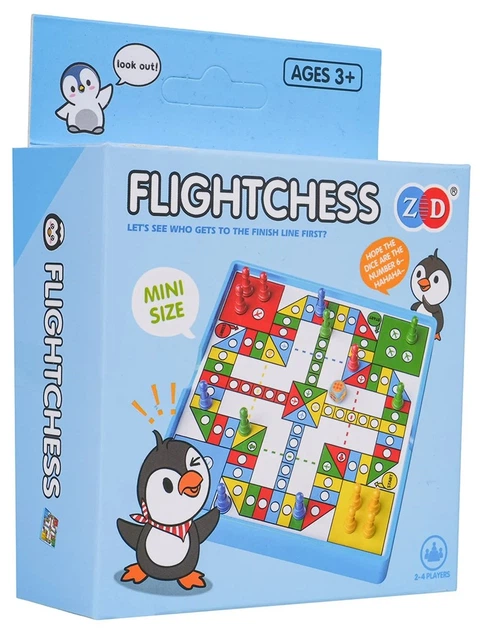 Gra planszowa Ludo Mini Pingwin dla dzieci od trzeciego roku życia. Gra jest niewielkich rozmiarów, dzięki czemu można ją zabrać wszędzie ze sobą.