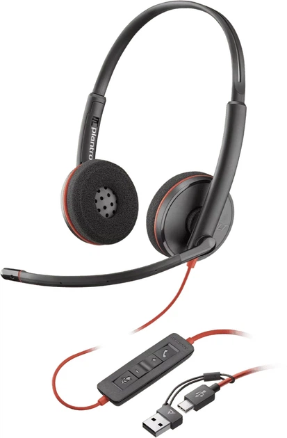 Провідні гарнітури UC серії Blackwire 3200 міцні, легкі, прості у використанні та доступні з різними варіантами підключення та носіння.